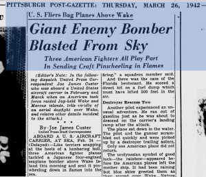 Custer filler feature on aircraft carriers, October 1942, Victoria Advocate